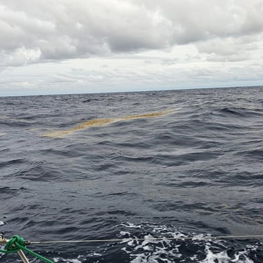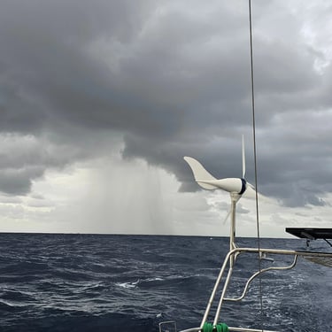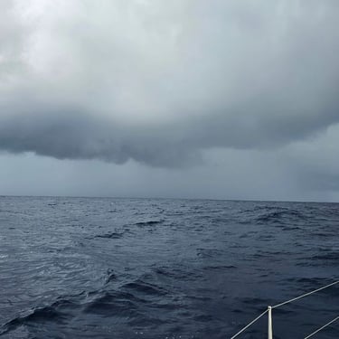 Après une nuit de pétole ou j'ai fais le choix de rentrer le génois plutôt que ne le laisser se balader et éviter qu'il ne souffre, le vent est rentré un peu ce matin, j'arrive à la fin du Pot au Noir, encore une vingtaine d'heure d'après mes fichiers météo.
