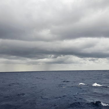 A 6h30, n'ayant plus de grains, étant dans la pétole de l’après grains, je renvois tout le génois, garde la GV réduite avec 3 ris, check le radar qui porte à 20 milles pour voir si il y a encore des grains en perspective . Bon, tout est ok, mets mon réveil pour dans 1 h.