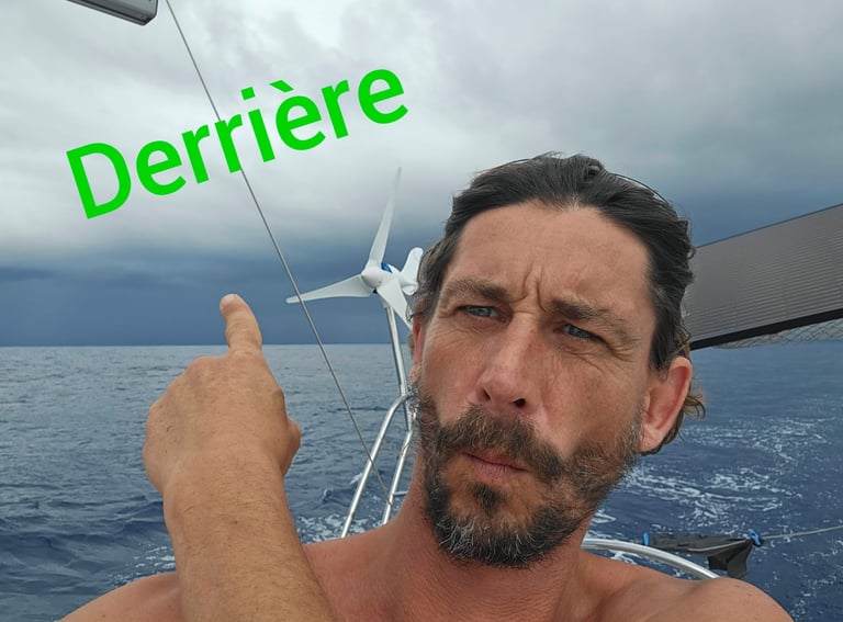 Le vent varie de 15/17 à 20nds et parfois 22nds c'est fou, aucune régularité, donc beaucoup de manœuvres et bien sûr les gribs sont dans la globalité ok et dans le détails, à l'ouest .