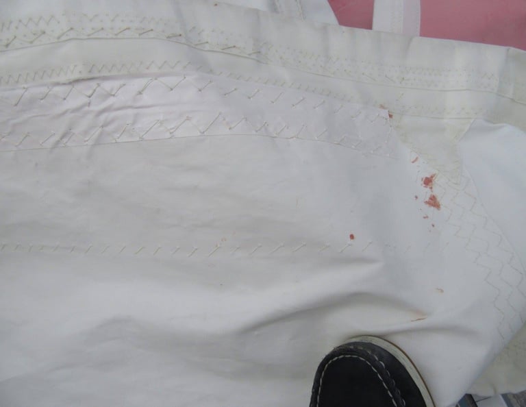 Sewing on a patch of sail cloth of 30 x 60 cm.