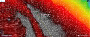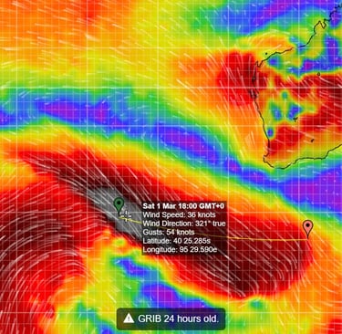 Je me prépare à un vrai coup de vent du Nord de 60 kn à minuit, heure du bateau.