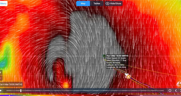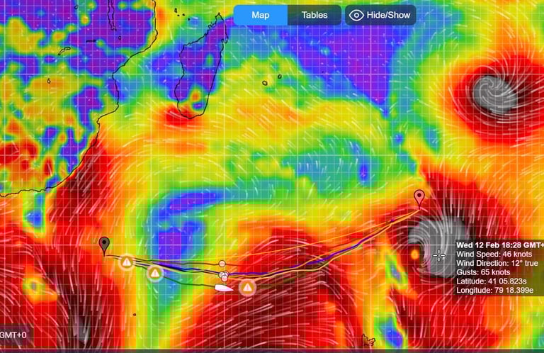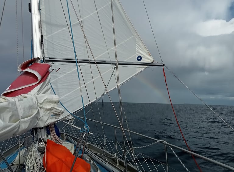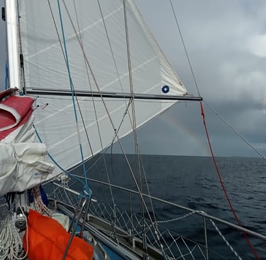 122 - 2025-02-10 Calms at Lat 42 S, sailing into the rain bow