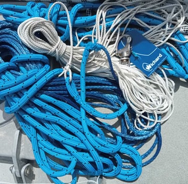 Its quiet downwind sailing, catching up on some small boat jobs.
