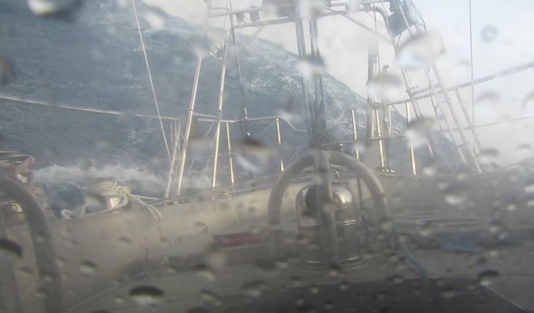 A few impressions from inside the boat when ex-tropical Storm ‘Garance’ was hitting us three days ago in a up to 60 kn Storm (F 11).