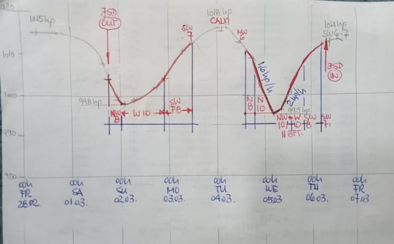 This is my hand-drawn barometer curve of the last week