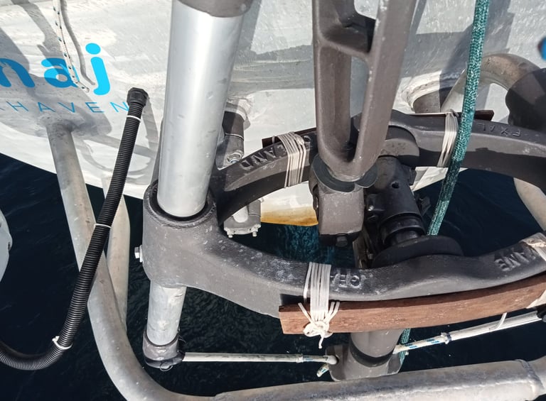 Réparation de l’arbre principal sur « Miss Aries ».