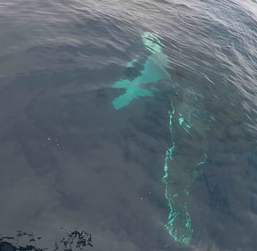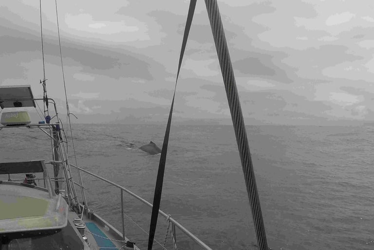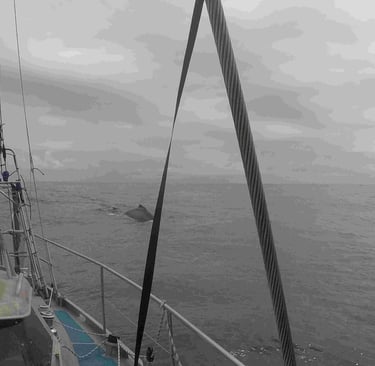 I had the most amazing visit from a group of Humpback whales. They were obviously checking me out, coming so close that they just about touched the hull. Staying very close and below the boat for over an hour.